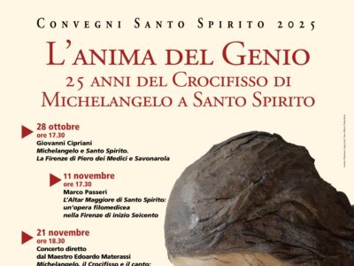 La Comunità Agostiniana di Santo Spirito presenta i Convegni 2025, dedicati ai 25 anni del ritorno del Crocifisso di Michelangelo nella Basilica. Un ricco programma di conferenze, musica e momenti di spiritualità per riscoprire il legame tra il genio del Buonarroti e la comunità agostiniana.