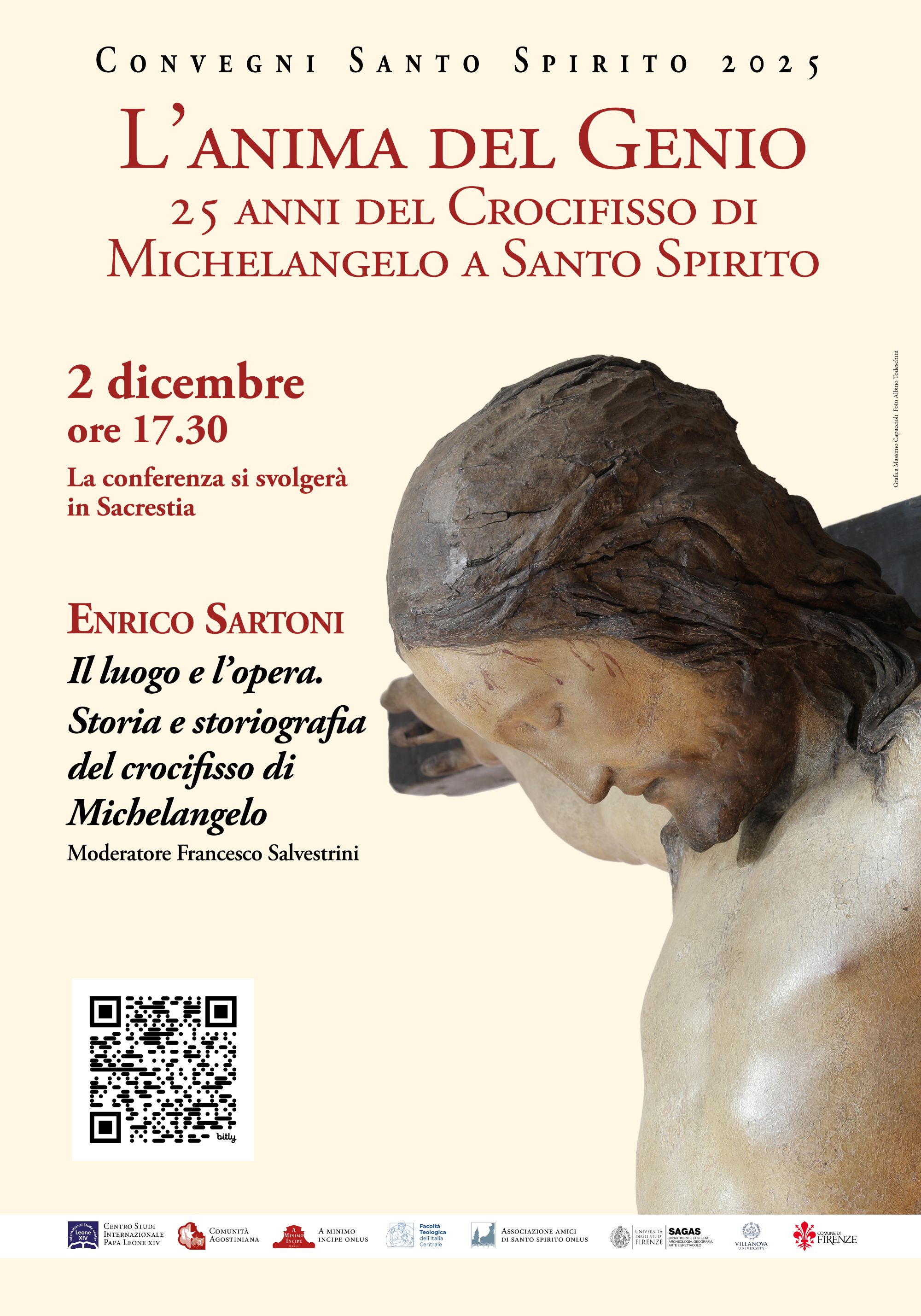 Martedì 2 dicembre, alle ore 17.30, si terrà il terzo appuntamento del ciclo dei Convegni di Santo Spirito 2025, dedicati ai venticinque anni del ritorno del Crocifisso di Michelangelo nella Basilica.