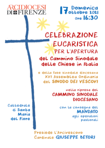 Domenica 17 ottobre alle 16.30 nella Cattedrale di Firenze si terrà la celebrazione per l’apertura del Cammino sinodale delle Chiese in Italia e della fase sinodale diocesana della XVI Assemblea Ordinaria del Sinodo dei Vescovi nella ripresa del Cammino sinodale diocesano.