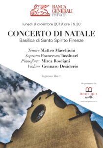 Il 9 dicembre alle 19.30 si terrà, in Santo Spirito, il tradizionale concerto natalizio ad ingresso libero, grazie al contributo di Banca Generali