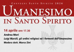 Martedì 14 aprile 2026 alle ore 17.30, nella Sala Capitolare della Basilica di Santo Spirito, si terrà un nuovo appuntamento del ciclo dei Convegni dedicati al tema dell’Umanesimo.