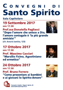 Gli ultimi appuntamenti 2017 dei Convegni di Santo Spirito, promossi dalla Comunità agostiniana di Firenze ed organizzati da S.E. Mons. Giovanni Scanavino OSA.