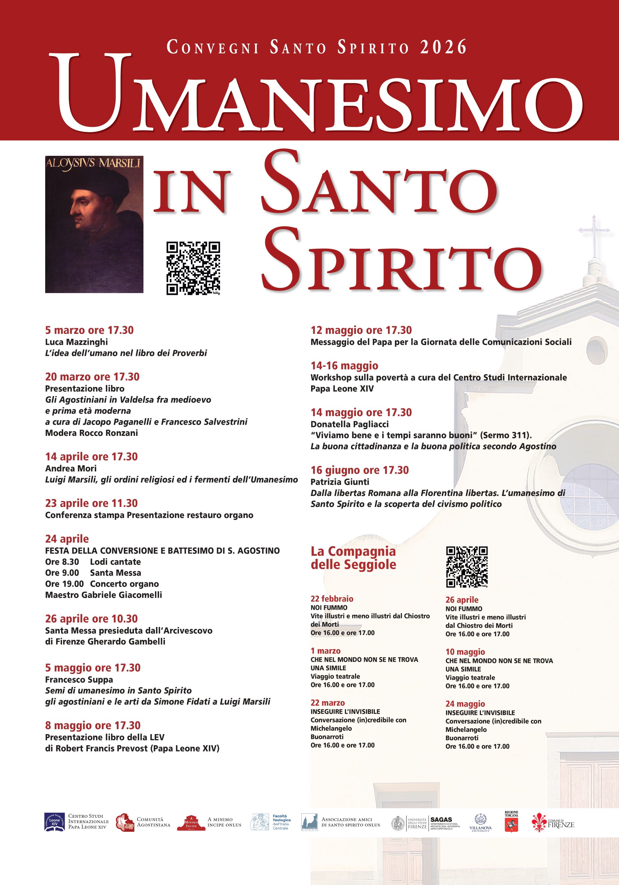 La Comunità Agostiniana di Santo Spirito è lieta di presentare la nuova edizione dei Convegni di Santo Spirito, dedicata quest’anno al tema dell’Umanesimo, nato e sviluppatosi proprio tra le mura del convento fiorentino e destinato a segnare profondamente la storia spirituale e culturale europea.