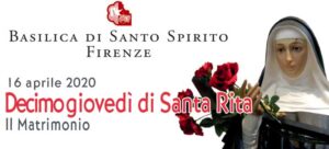 Tema del decimo giovedì: Il Matrimonio Carissimi/e, vi inviamo il testo per il decimo giovedì di Santa Rita, che avrà al centro il matrimonio. Rimaniamo uniti nella Preghiera. decimio-giovedi-santa-ritaDownload Un abbraccio e un saluto a tutti. La comunità agostiniana di Santo Spirito Condividi:Tweet Fai clic per condividere su WhatsApp (Si apre in una nuova finestra) WhatsApp Fai clic qui per stampare (Si apre in una nuova finestra) Stampa Pubblicato il 15 Aprile 2020Pubblicato in: NotiziePost precedente:Nono giovedì di Santa Rita Post successivo:Undicesimo giovedì di Santa Rita