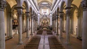 The sequence of columns and niches generates an internal movement that invites one to move through the space, rather than observe it from a single privileged point. Brunelleschi does not impose a fixed path or a single interpretation of the building: the modular organization allows each visitor to establish a personal relationship with the sacred space, transforming the visit into an architectural, sensory, and interior experience.
