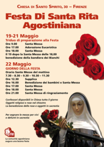 In occasione della festività di Santa Rita ecco il programma del Triduo e del giorno della Festa.
