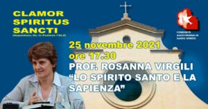 Giovedì 25 alle 17.30 si terrà la conferenza della Professoressa Rosanna Virgili nell’ambito del ciclo CLAMOR SPIRITUS SANCTI, nato per affiancare alla proposta culturale/spirituale anche quella di un cammino comunitario accompagnato dall’azione e dalla forza dello Spirito Santo.