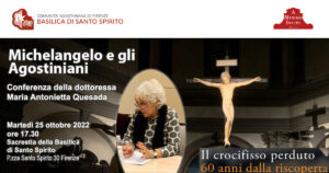 Martedì 25 ottobre alle ore 17.30 la dottoressa Maria Antonietta Quesada terrà, nella Sacrestia di Santo Spirito, una conferenza su Michelangelo e gli Agostiniani.
