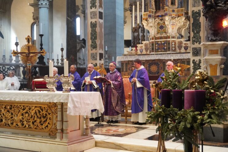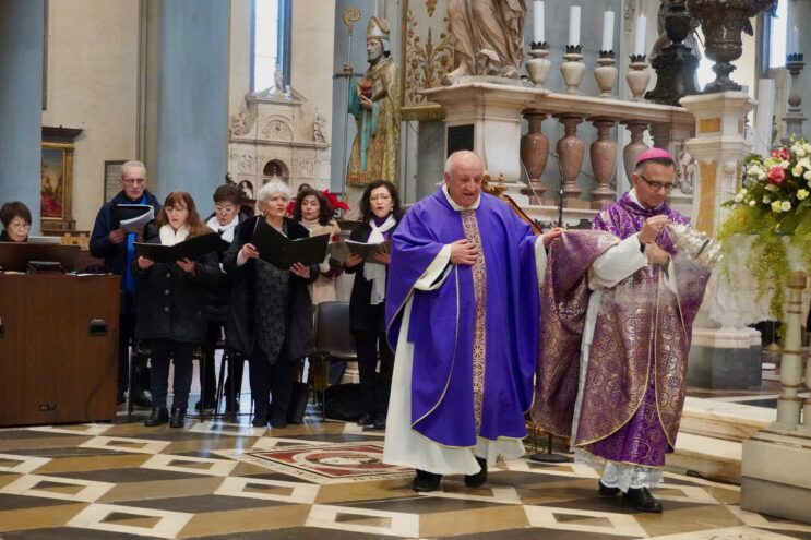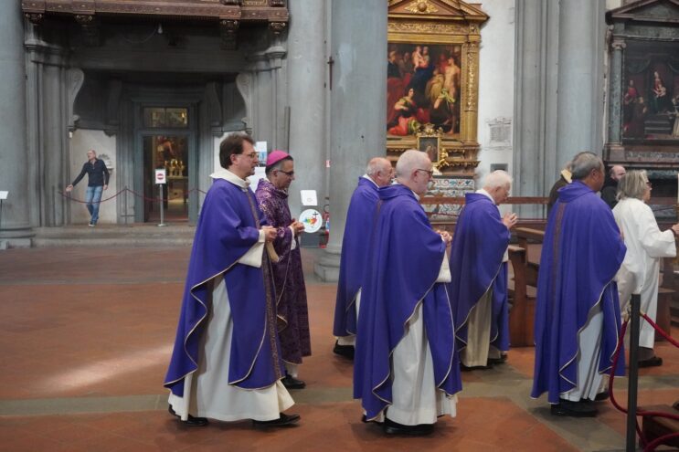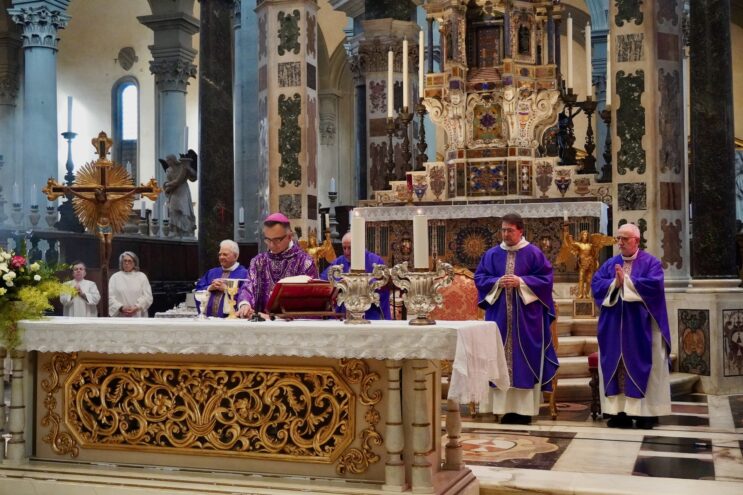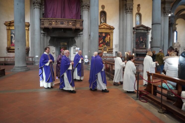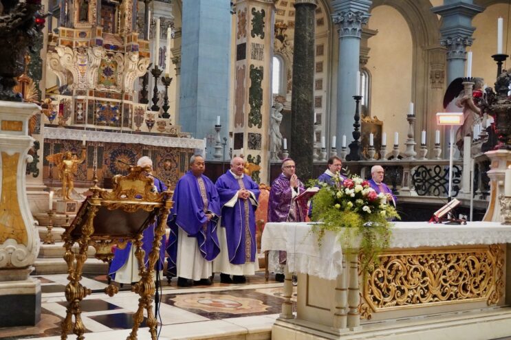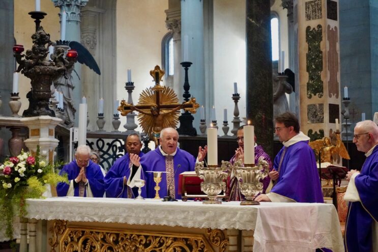 Al termine della celebrazione, don Alessandro Lombardi ha portato il saluto dell’Arcivescovo di Firenze, esprimendo un sentito ringraziamento alla comunità agostiniana per la sua presenza viva e incisiva nel cuore della città e della Chiesa fiorentina. Un ringraziamento particolare è stato rivolto a Mons. Castellucci per il servizio generoso reso negli anni alla Chiesa di Firenze e all’intera Chiesa italiana, in particolare nel suo ruolo nel cammino sinodale. È stato ricordato il suo stile capace di comporre differenze e accompagnare un percorso ecclesiale come una vera sinfonia dello Spirito, mettendo la propria storia a servizio di molte storie.