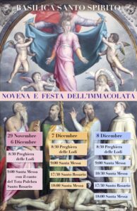 E proprio all’inizio dell’Avvento, abbiamo una spinta notevole nel nostro cammino spirituale, con la Novena dell’Immacolata che inizia il 29 novembre. Di questa Novena e della Solennità dell’Immacolata (8 dicembre), vi alleghiamo il programma