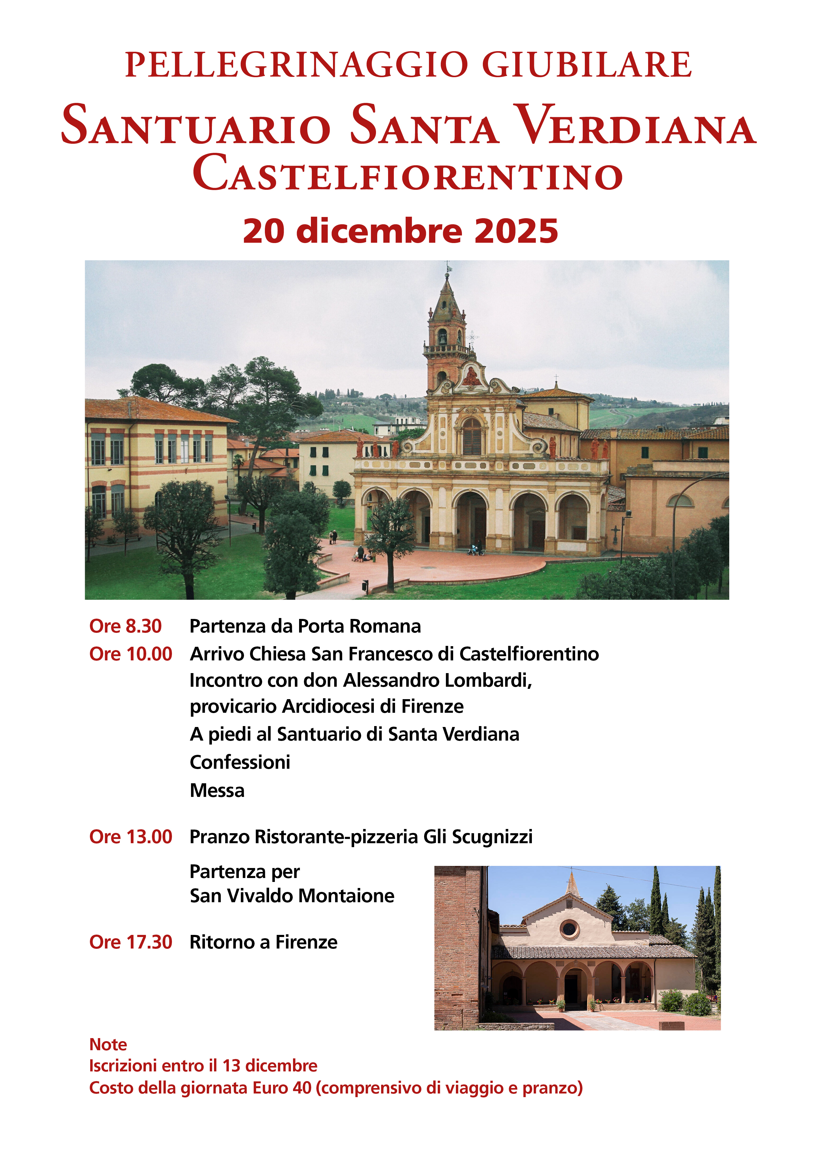 La Comunità Agostiniana di Santo Spirito organizza un pellegrinaggio giubilare al Santuario di Santa Verdiana, Chiesa Giubilare dell’Arcidiocesi di Firenze, previsto per sabato 20 dicembre 2025.