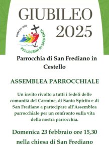 Domenica 23 febbraio alle 15:30 la nostra Comunità parteciperà all’Assmeblea Parrocchiale nella chiesa di San Frediano in Cestello, Parrocchia di Riferimento per Santo Spirito. Condividi:Tweet Fai clic per condividere su WhatsApp (Si apre in una nuova finestra) WhatsApp Fai clic qui per stampare (Si apre in una nuova finestra) Stampa Pubblicato il 20 Febbraio 2025Pubblicato in: EvidenzaPost precedente:60° Anniversario di Madre Maria Agnese Tribbioli Post successivo:I Convegni di Santo Spirito 2025: Il Libro – Memoria dell’Anima