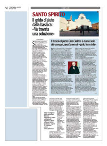 Ingrandendo l’immagine di seguito è possibile leggere l’articolo di Irene Funghi dal titolo “SANTO SPIRITO: Il grido d’aiuto della basilica” ed il pezzo di Antonio Lovascio su I Convegni di Santo Spirito.