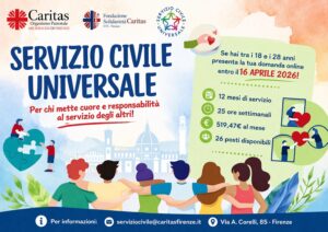 Con piacere condividiamo quanto segnalato da Caritas Firenze in merito all’apertura del bando per il Servizio Civile Universale 2026.