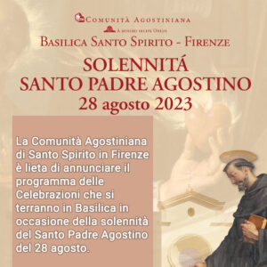 La Comunità Agostiniana di Santo Spirito in Firenze è lieta di annunciare il programma delle Celebrazioni che si terranno in Basilica in occasione della solennità del Santo Padre Agostino del 28 agosto.