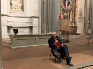 verifica delle prenotazioni e saranno poi accompagnati nella Sala del Capitolo dove Giulia Bacci Tirinnanzi introdurrà il Crocifisso di Michelangelo; seguirà visita in Sagrestia e poi i partecipanti si sposteranno in Basilica dove prenderanno posto sulle panche.