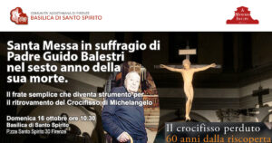 Domenica 16 ottobre alle ore 10.30, nella Sacrestia di Santo Spirito, si terrà la Messa in ricordo di Padre Guido Balestri nel sesto anno della sua morte.
