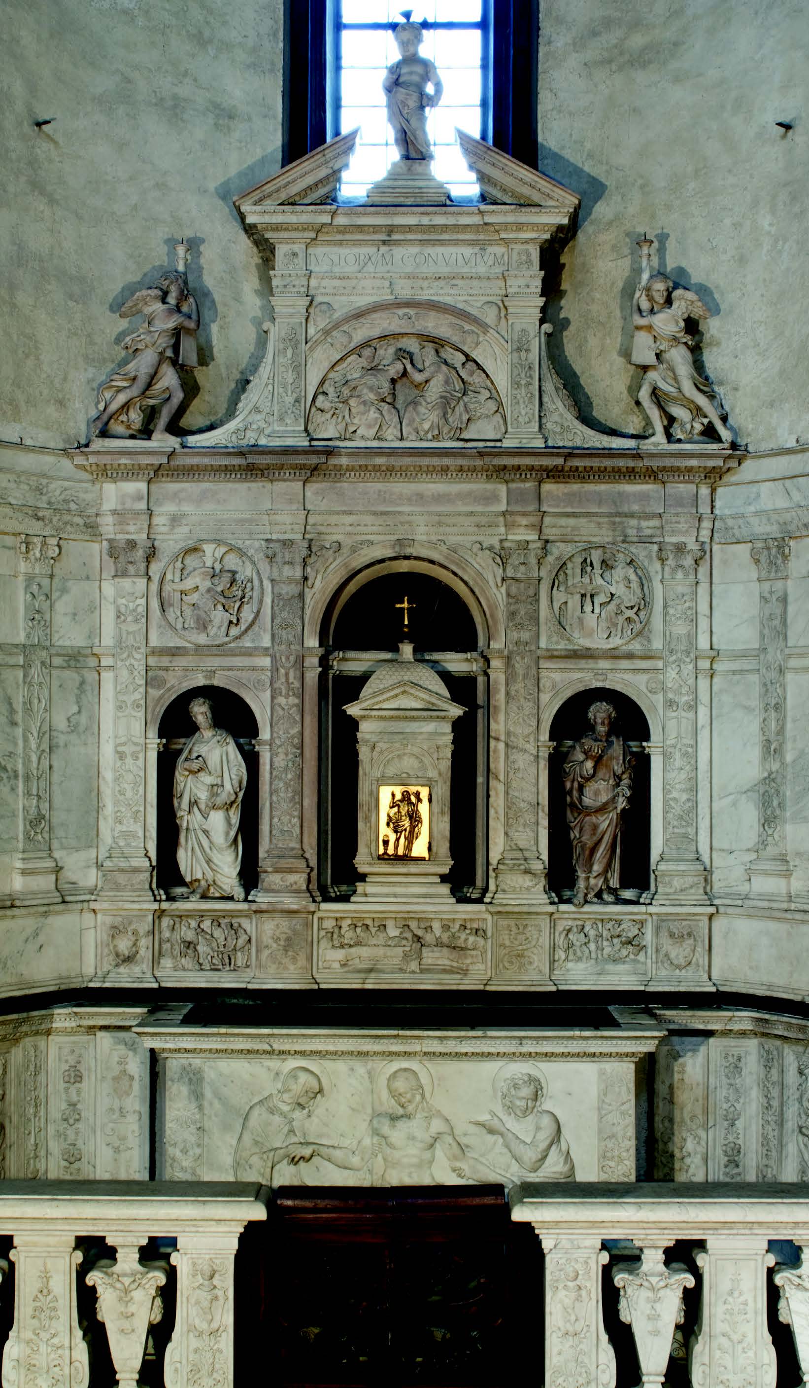Uno dei capolavori del Rinascimento fiorentino nella Basilica di Santo Spirito, esempio di perfetto equilibrio tra architettura e scultura.