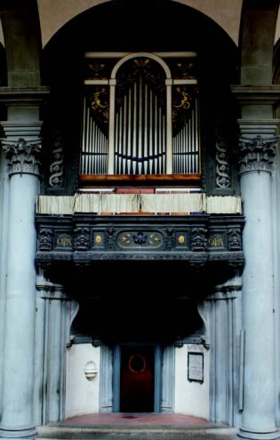 Sopra l’ingresso al vestibolo, si trova lo storico organo, che introduce idealmente al percorso museale agostiniano. Da qui si accede al vestibolo e alla sacrestia, cuore spirituale e artistico del complesso, progettata da Giuliano da Sangallo. Al centro della sacrestia è custodito il celebre Crocifisso ligneo di Michelangelo, opera giovanile di intensissima forza espressiva, che costituisce uno dei momenti più alti dell’esperienza di visita. Dal percorso museale si raggiunge inoltre il Chiostro dei Morti, la Sala Capitolare e il Refettorio, arricchito dagli affreschi del Poccetti, ampliando la conoscenza della vita conventuale agostiniana.