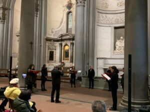 Il coro Mulieris Voces ha eseguit un antico madrigale diretto dal maestro Edoardo Materassi, su testo di Giovan Battista Strozzi il Vecchio, dedicato ad un’importante opera conservata nella Basilica: la Pietà di Nanni di Baccio Bigio.